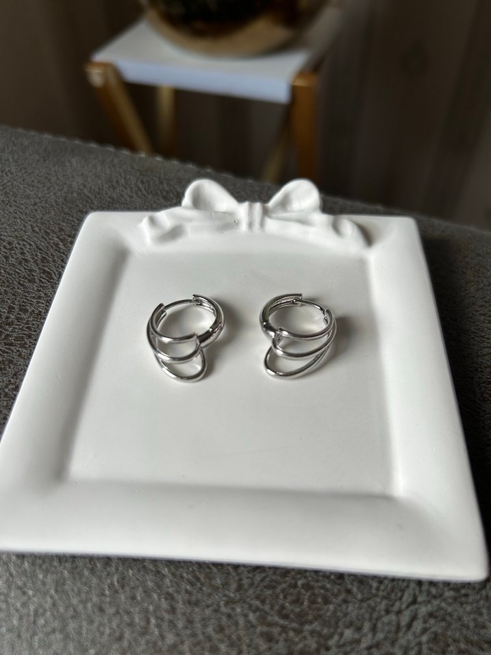 Minimalist ve çağdaş tasarımlı, tokalı kısa beyaz küpeler. Düğünler için uygun, desensiz ve sade gri tonlarda.