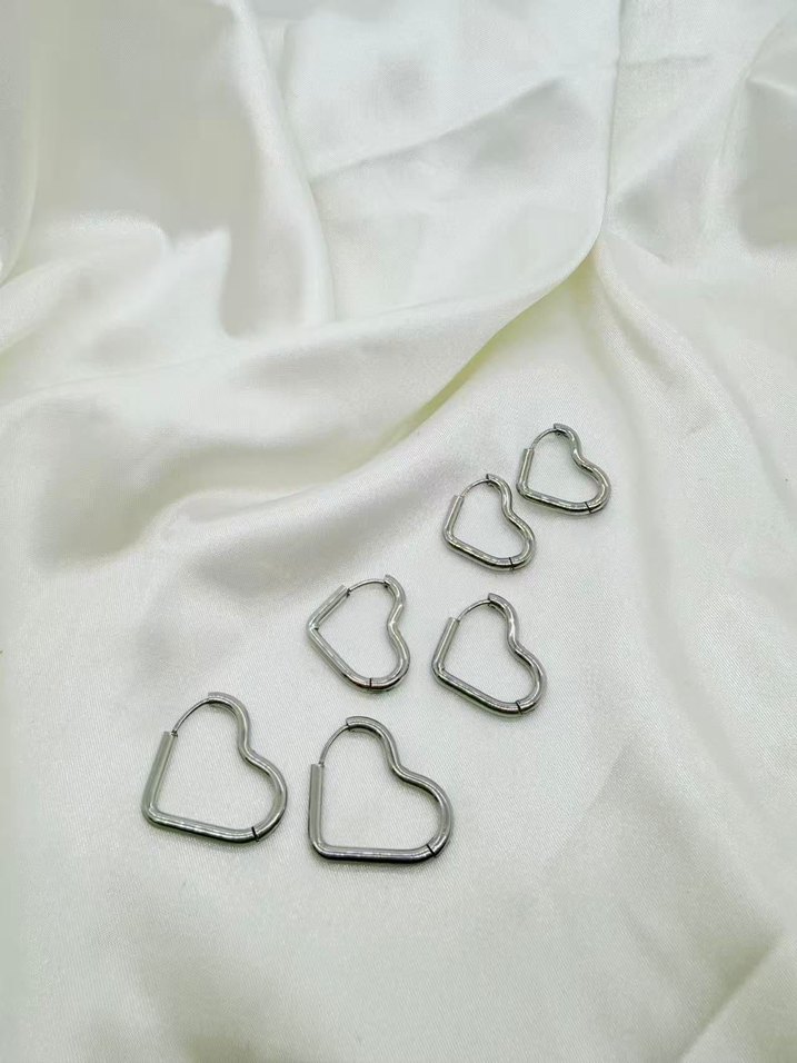 Beyaz renkte, tokalı, kısa boyda minimalist kalp şeklinde küpe seti. Günlük kullanım için sade ve karşı kültür tarzında uygun. ❤️
