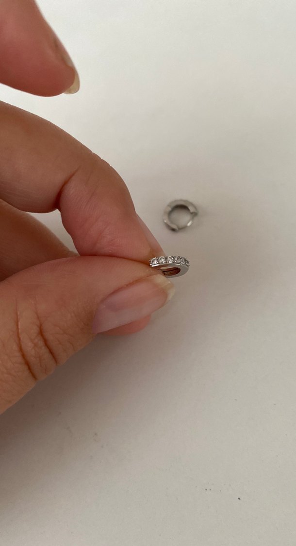 Minimalist tasarımlı, beyaz ve gri tonlarında parlak detaylı kadın piercingi, çağdaş ve sade bir stile sahiptir.✨ 6 mm dir