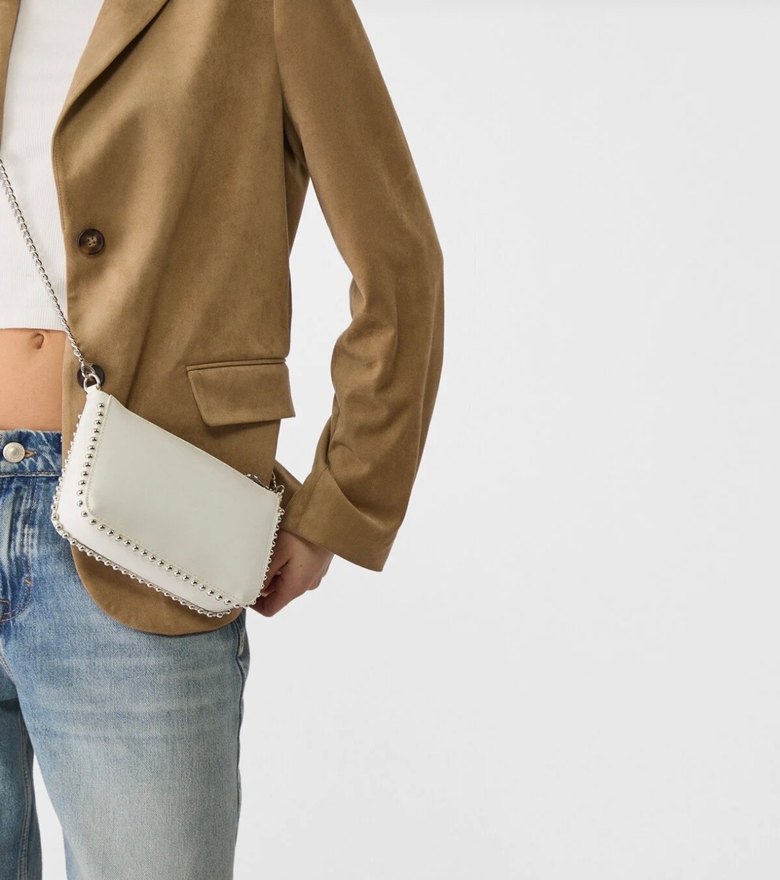 Minimalist Beyaz Süet Kemerli Kadın Çanta