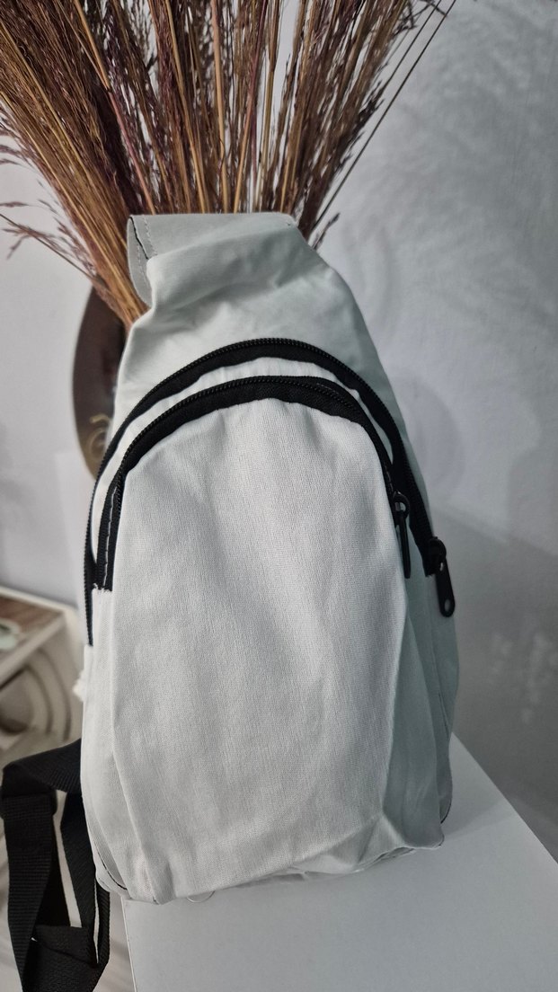 Kadınlar için gri renkte, fermuarlı bölmelere sahip minimalist tasarımlı, sentetik kumaştan çapraz çanta.