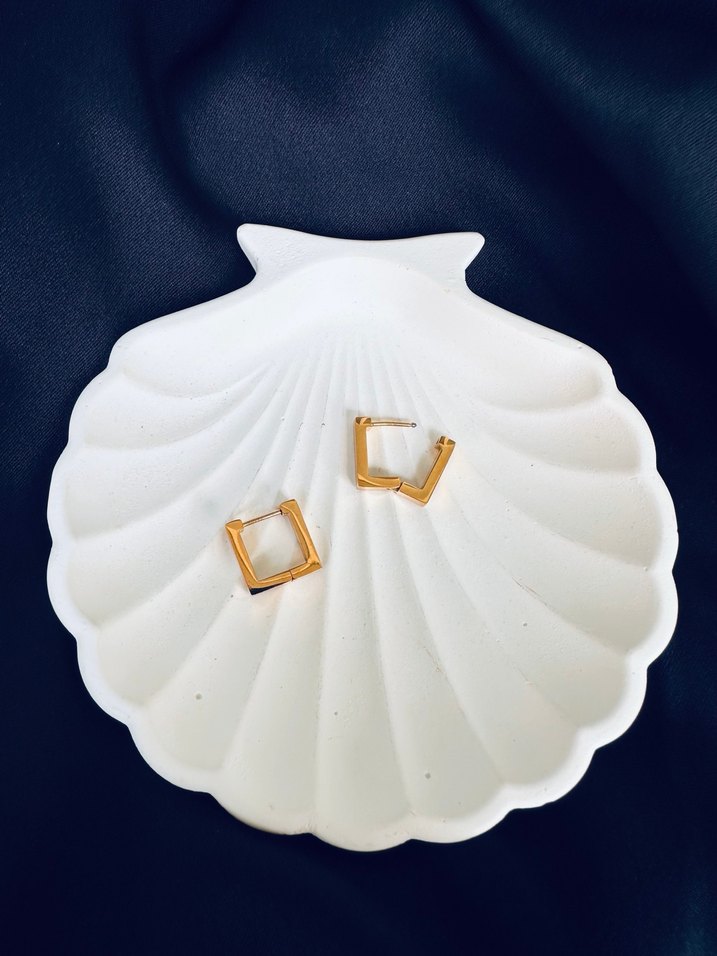 Parlak altın renkli, minimalist kare tasarımlı mini küpeler, günlük kullanım ve zahmetsiz şıklık için ideal. ✨