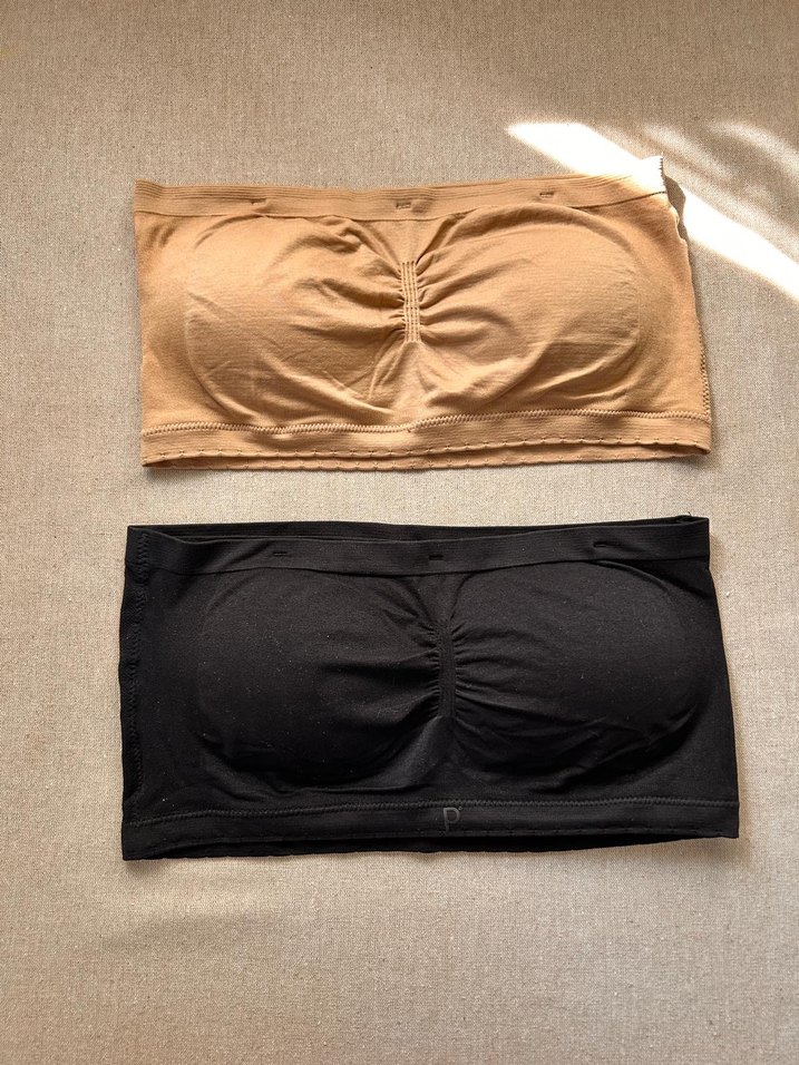 Bej ve siyah renklerde, minimal ve dikişsiz midi sütyen seti. Rahat oturumu ve yumuşak kumaşıyla günlük kullanıma uygundur.