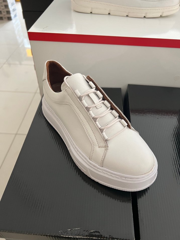 Minimalist tasarımlı, beyaz renkte, bağcıklı erkek günlük ayakkabısı. Kauçuk tabanlı, sokak stiline uygun. #erkek#erkekbot#erkekayakkabı#deri