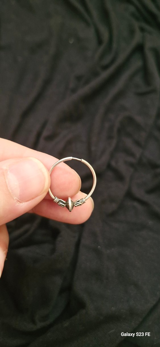 Minimalist tasarımlı erkek halka küpe, gri detaylarla sade ve karşı kültür tarzını yansıtır. gümüştür ve tektir