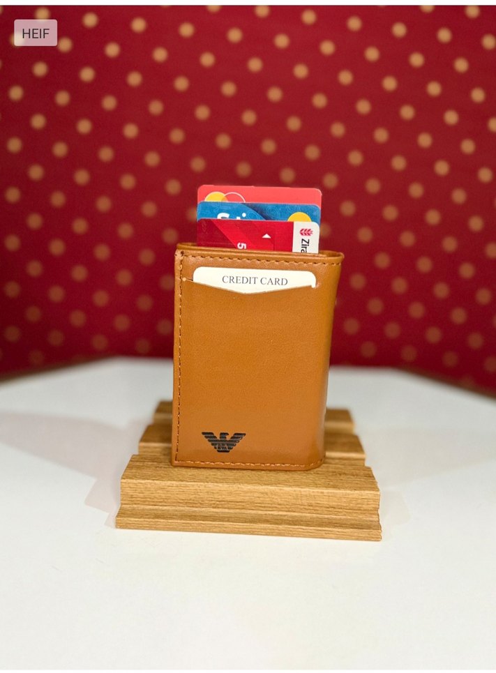 Minimalist tasarımlı kahverengi erkek cüzdanı, kredi kartı için özel bölmeler içerir. Renkli ve baskılı deseniyle sokak modasına uygundur.