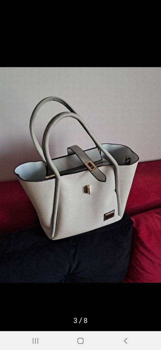 Minimalist tasarıma sahip gri beyaz deri çanta, tokalı kayış detayıyla günlük kullanıma uygundur. Desensiz ve çağdaş stilde tasarlanmıştır.