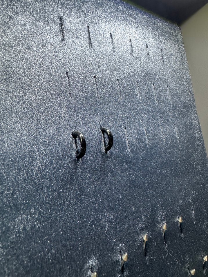 Koyu gri renkte, minimalist ve avangart tasarıma sahip erkek küpeleri. Trend belirleyiciler için uygun, karşı kültür stilini yansıtıyor. Cerrahi çeliktir.