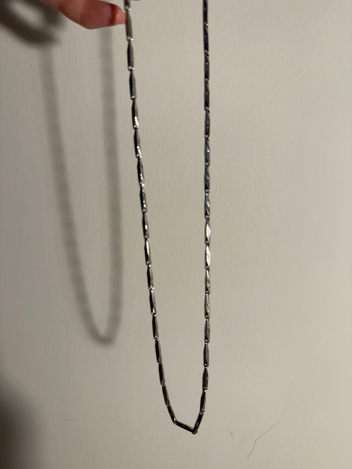 Bu erkek kolye, minimalist tasarıma sahip, çağdaş tarzda gri renktedir. Sade ve temel bir görünüm sunar.