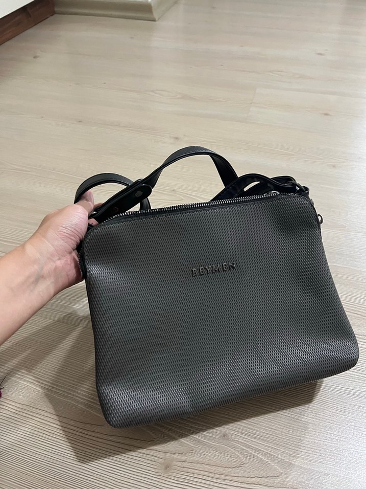 Kadın çantası, fermuarlı kapanışa ve minimalist gri tasarıma sahiptir. Sentetik kumaştan yapılmış, trend sokak stili için uygundur. Çok gözlü olduğu için her şeyi alıyor. bir defosu yok severek kullandım.