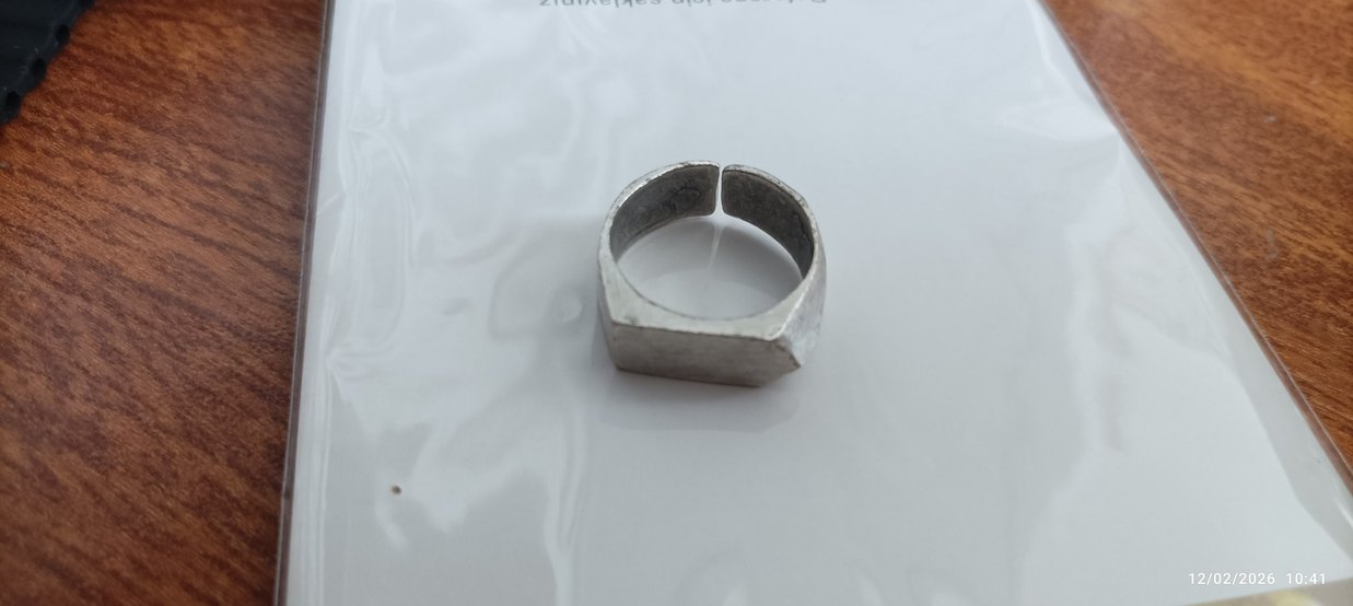Minimalist tasarımlı, yarıklı ve desen içermeyen gri kadın yüzüğü, günlük kullanım için uygundur.