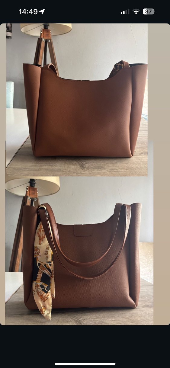Minimalist kahverengi deri kadın çanta, düz ve şık tasarıma sahiptir. Dekoratif eşarp detayıyla günlük kullanıma uygundur, zahmetsiz şıklık sunar.