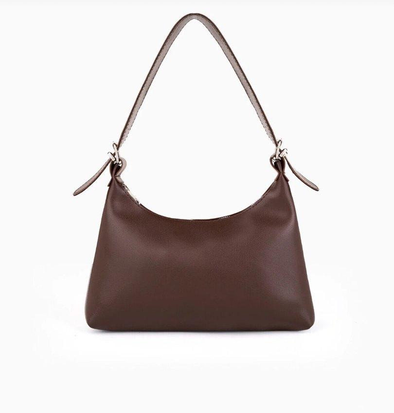 Minimalist tasarıma sahip kahverengi deri kadın çanta, günlük kullanım için şık ve zarif bir seçenektir. Modern klasik tarzıyla her kombine uyum sağlar.