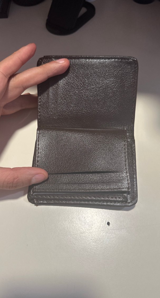 Minimalist tarzda, kahverengi ve gri tonlarında, desen içermeyen erkek cüzdanı. Temel ve sade tasarımıyla dikkat çeker.