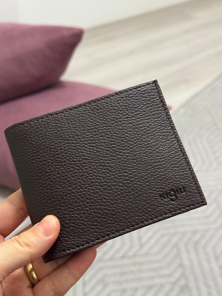 Düz, desensiz ve minimalist tarzda koyu kahverengi erkek cüzdanı. Sokak modasına uygun sade tasarım.