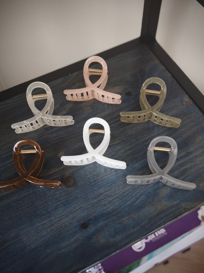 Hafif bej renkte, plastikten yapılmış minimal kurdele şekilli saç tokaları. Çağdaş ve modaya uygun tasarım, trend belirleyiciler için. ✨