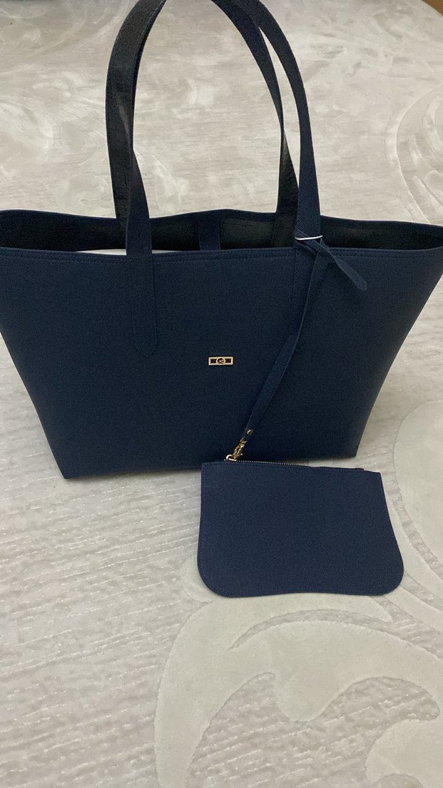 Minimalist tasarımlı, parlak lacivert renkte kadın omuz çantasıdır. Fermuarlı bölmeleri ve küçük cüzdanı vardır, günlük sokak stili için uygundur.
