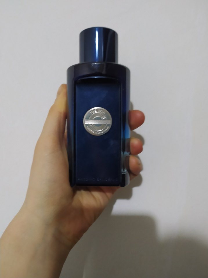 Parlak mavi renkte, minimalist ve çağdaş tasarıma sahip erkek parfüm şişesi. Zarif ve sade formu modern tarzını vurgular.