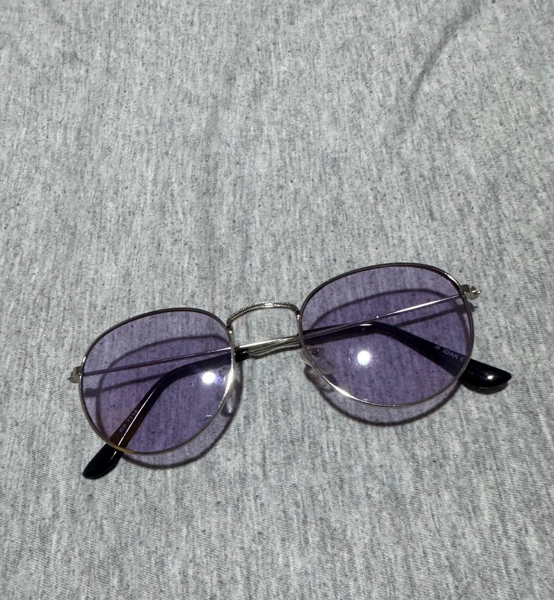 Bu kadın gözlükleri, minimalist tasarıma sahip mor camlar ve gri çerçeveyle rahat şıklık sunar. ️