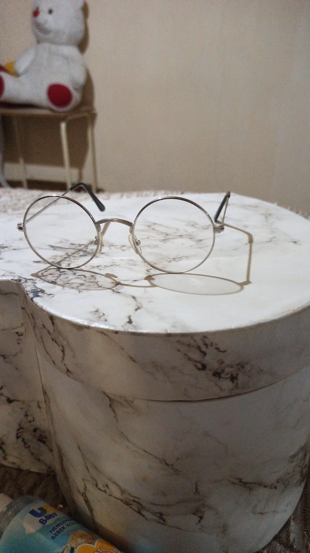Kadınlar için şeffaf yuvarlak camlı, minimalist tasarımlı ve gri-beyaz renkli, karşıt kültür tarzını yansıtan gözlükler.