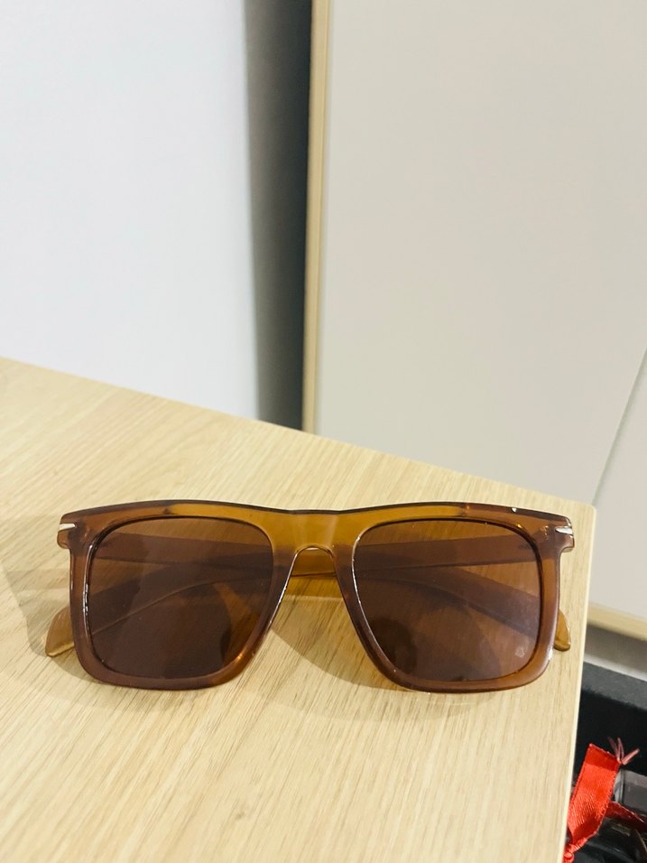 Parlak kahverengi şeffaf çerçeveli, minimalist tasarımlı çağdaş kadın güneş gözlüğü, sade ve temel stil için uygundur. ️