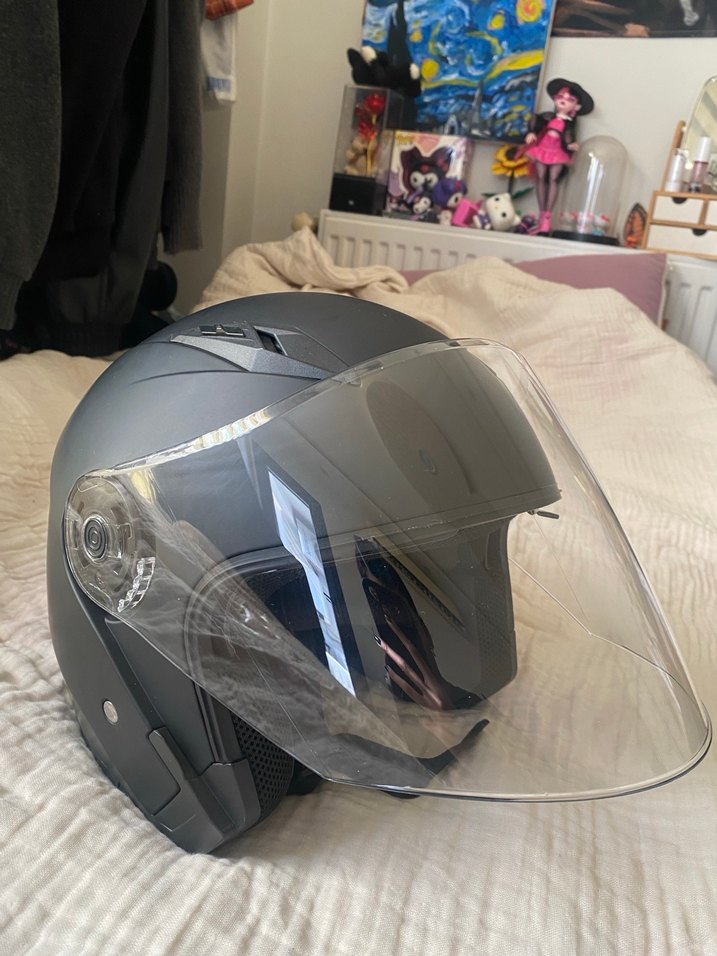 siyah şeffaf vizöre ve tokalı kayışa sahip minimalist biker kask. Dayanıklı plastik malzemeden yapılmıştır, trendsetterlar için şık ve sade.M BEDEN 58CM