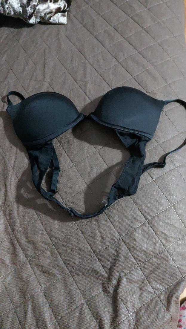 Minimalist siyah sütyen, desensiz ve orta uzunlukta, koyu goth tarzına uygun bir tasarıma sahiptir. kızımın,cok az kullandı kaliteli bır sütyen,maalesef etıketi kesmiş hiçbir kusur yok küçük göğüsler için, sanıyorum 75 bedendir,kıyafetleri 36 bedendi.. yumuşak bir dolgu var (yarım) askılar ince ve ayarlanabılir her zaman pentiden alırdı,muhtemelen marka penti