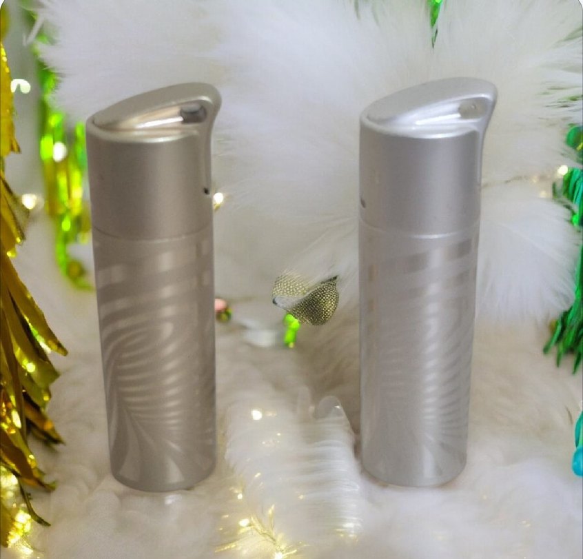 Bej ve gri tonlarında, minimalist tasarımlı iki modern erkek parfümü. Zarif sprey şişeleriyle sade şıklık sunar.