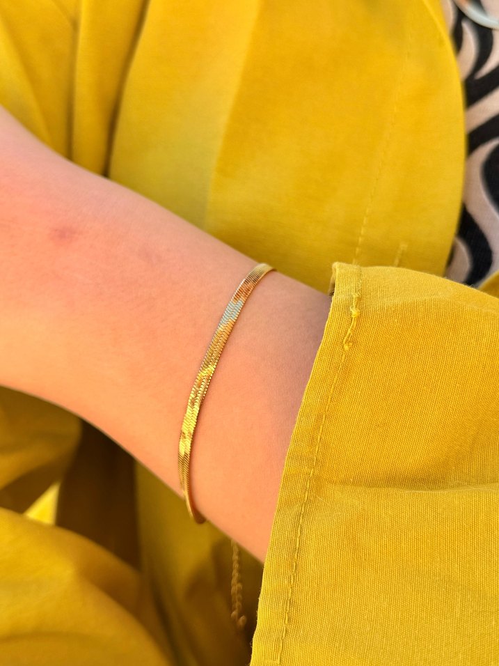 Parlak yılan desenli ve zincir detaylı altın bileklik, bohem stil için uygundur. Minimalist tasarımıyla günlük kullanıma uygundur. ✨ celik üründür