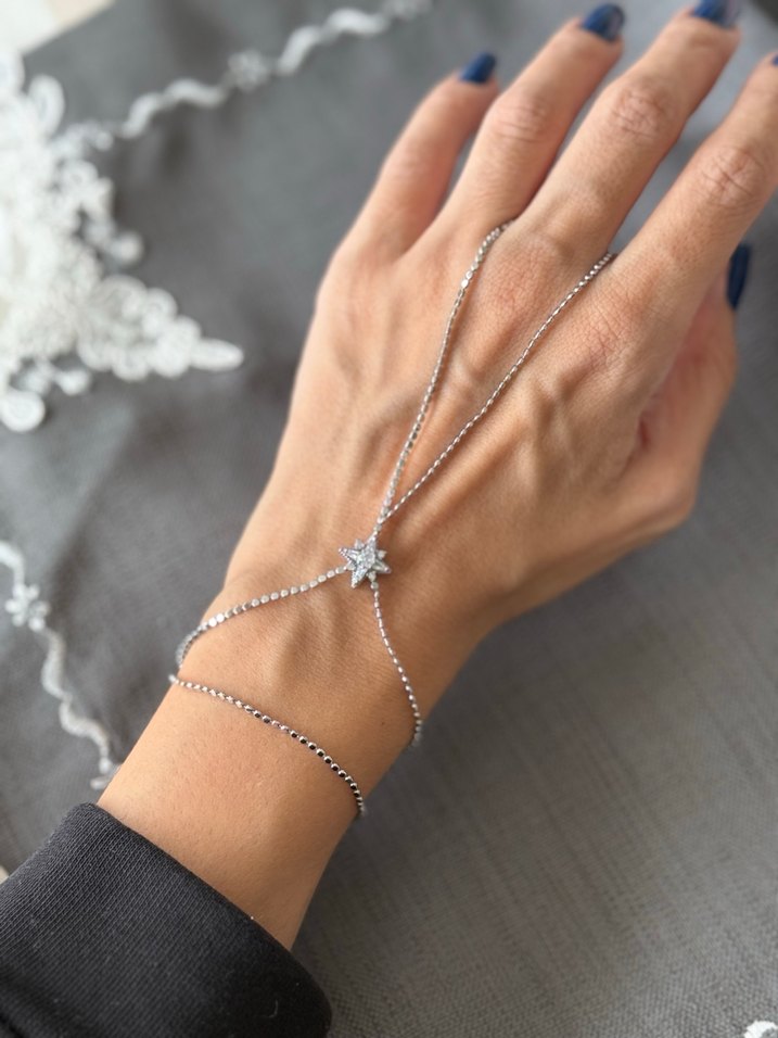 Taşlı yıldız ezme zincir gümüş renk şahmeran. Kararma yapmaz. Elinizde başka takılarla rahatça kombin yapabileceğiniz bir üründür. Bu yaz en çok tercih edilenler arasına girdi. Bileklik ölçüsü olarak da tüm ölçülere uyumludur. #şahmeran #altınşahmeran #goldşahmetan #accessories #zaratakı #mangobijuteri #bijuteri #shahmaranbracelet #bracelet