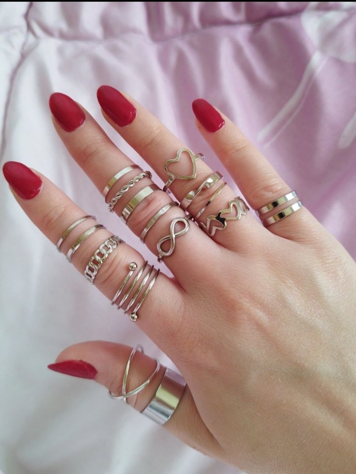 Minimalist ve bohem tarzda günlük kullanıma uygun gümüş renk kadın yüzük seti.