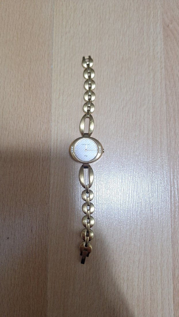 Altın renkli zincir bilezik ve minimalist yuvarlak kadranıyla klasik zarafeti modernlikle birleştiren kadın saati. ⌚