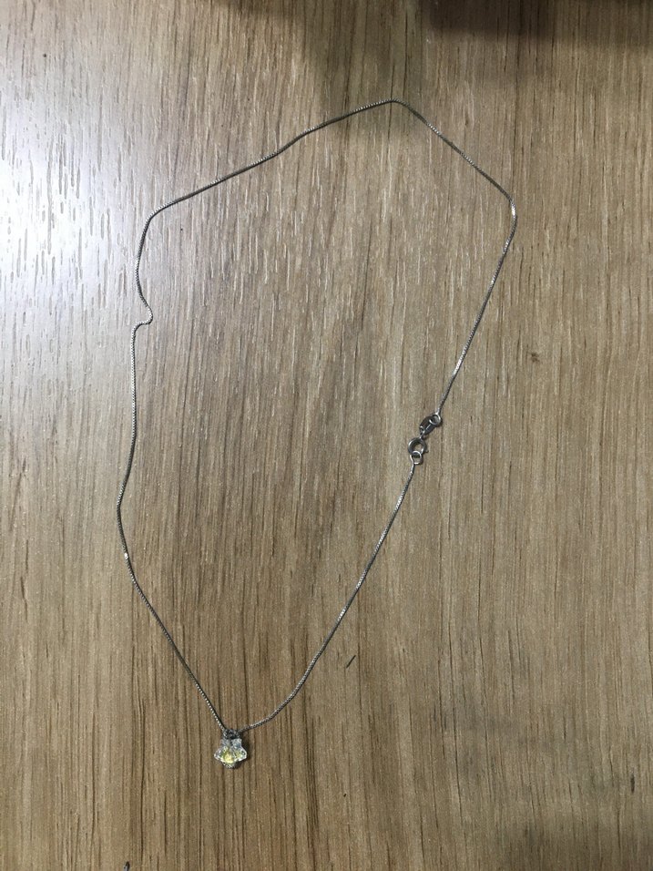 Gri ince zincirli, bej sade kolye. Normal midi uzunlukta, minimalist ve çağdaş tasarıma sahip, günlük kullanıma uygun.