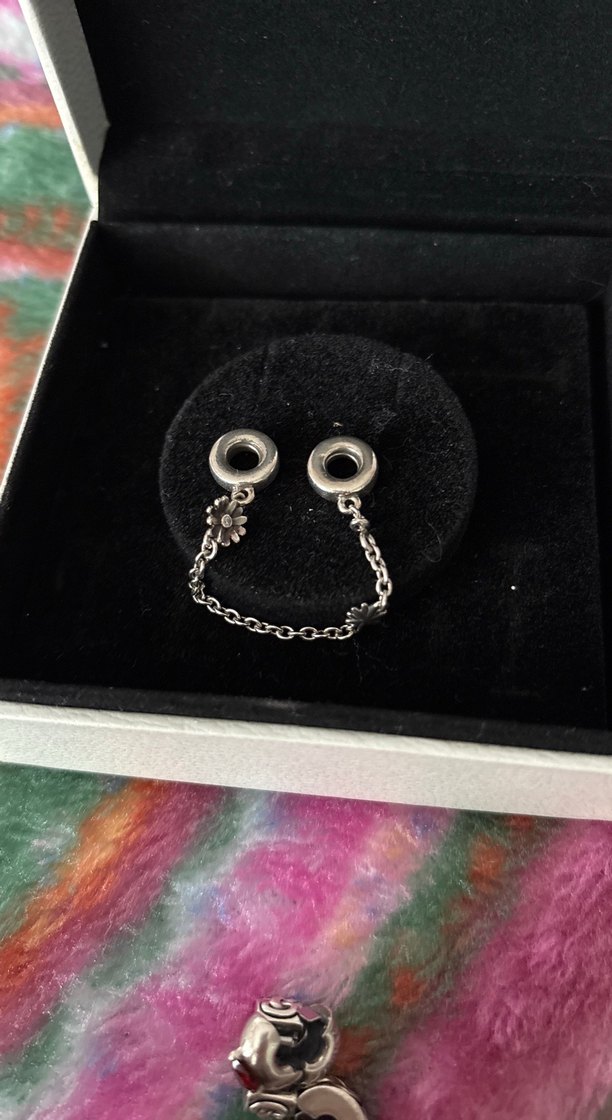 , küçük çiçek detaylı ince zincirle bağlı, minimalist gotik ve rock punk tarzını yansıtıyor.