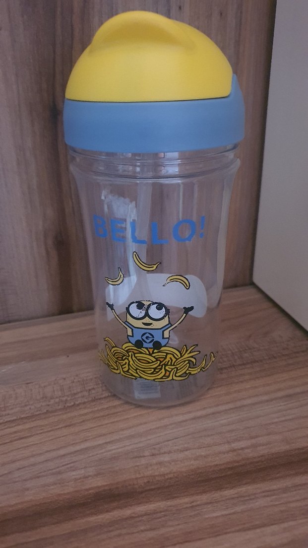 Renkli, sarı kapaklı bebek biberonu, Minion ve muz desenleriyle süslenmiştir. Üzerinde "BELLO!" yazısı bulunur. Urun sifir kullanilmamistir