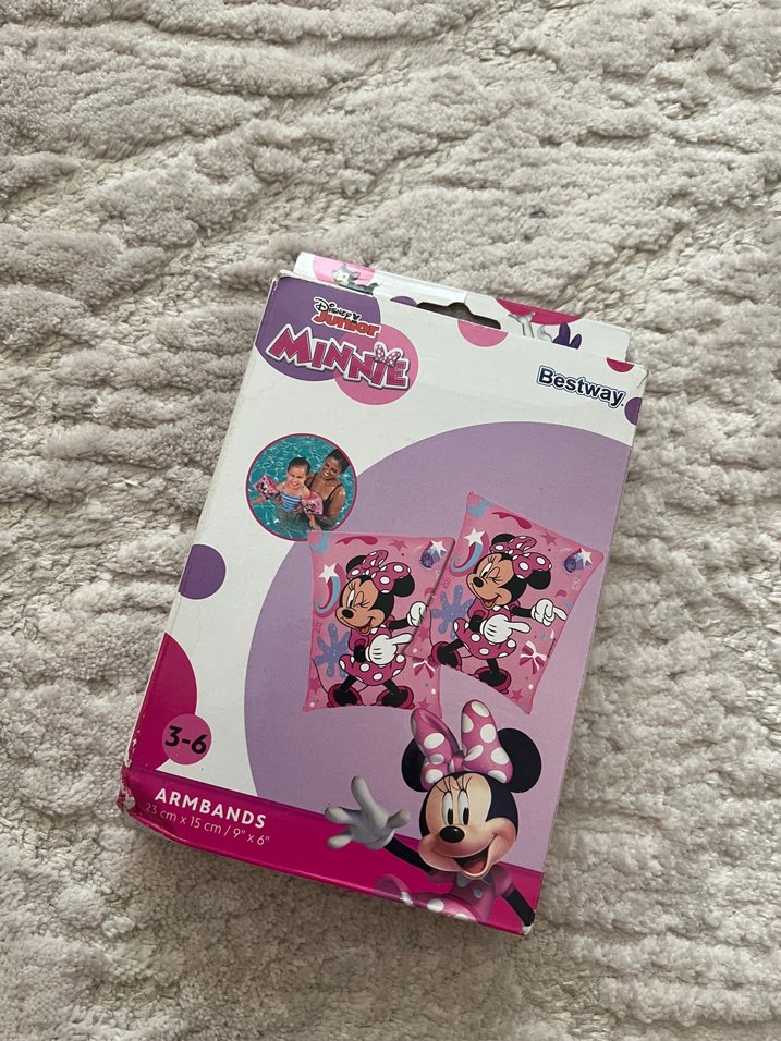 Yumuşak ve pastel pembe renkte, Minnie Mouse baskılı çocuk kollukları. 3-6 yaş arası için uygun, Bestway markası. ♀️