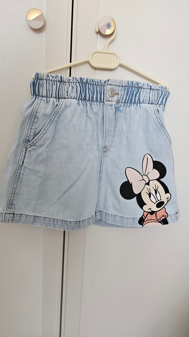 Minnie Baskılı Mavi Denim Kız Etek