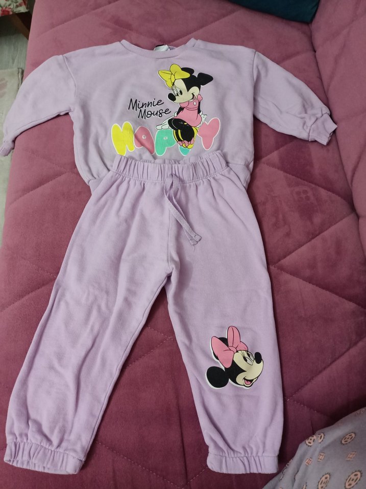 Pastel mor renk Minnie Mouse baskıli kız takım Hiçbir sorunu yok sadece bize küçük kaldı.