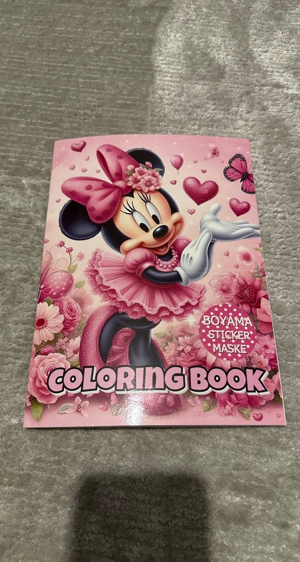 Minnie Mouse temalı boyama kitabı, sticker ve maske içerir. Canlı pembe renklerle dolu eğlenceli çizimler sunar. Kullanılmamıştır, Boyama kitabı maske ve sticker hediyelidir kitabın arka kapağı maskedir 8 yaprak toplamda16 sayfa boyamadan oluşur kullanılmamıştır #boyamakitabı #doğumgünühediyelik #doğumgünükonsept