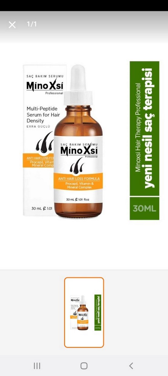 MinoXsi Professional Multi-Peptidli saç yoğunluğu için serum, Procapil, Vitamin B ve mineral kompleksi içerir. 30ml şişede.