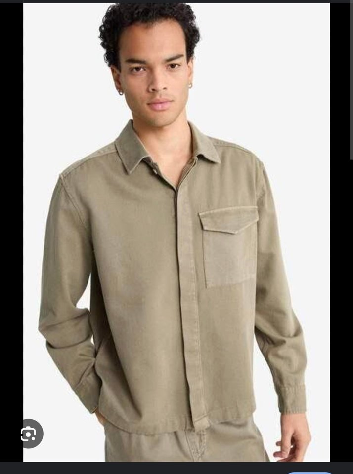 Uzun kollu, yeşil kot erkek gömlek. Düğmeli ve kesik yakalı, göğüs cebine sahip, günlük rahat kullanıma uygun regular fit. deformesi yok