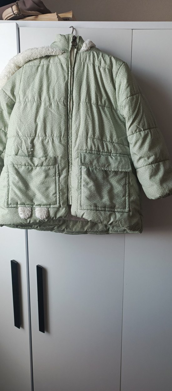 mint yeşili kız çocuk montu, bol kesim ve kesik yaka detayına sahiptir. Kürk detayları ve iki ön cepli, sade normcore stilde bir üründür. ❄️ sağ cebin üstünde minik bir sokulme var sadece