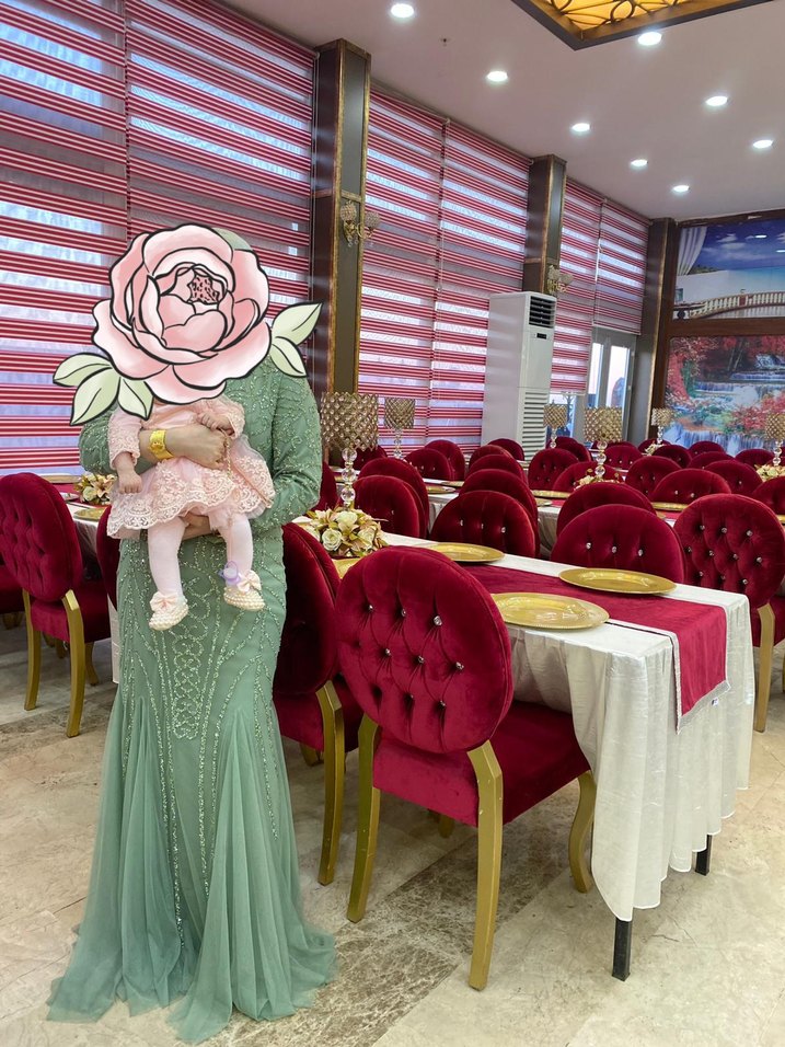 Mint renkli, işlemeli, şık balık abiye çok iyi durumda