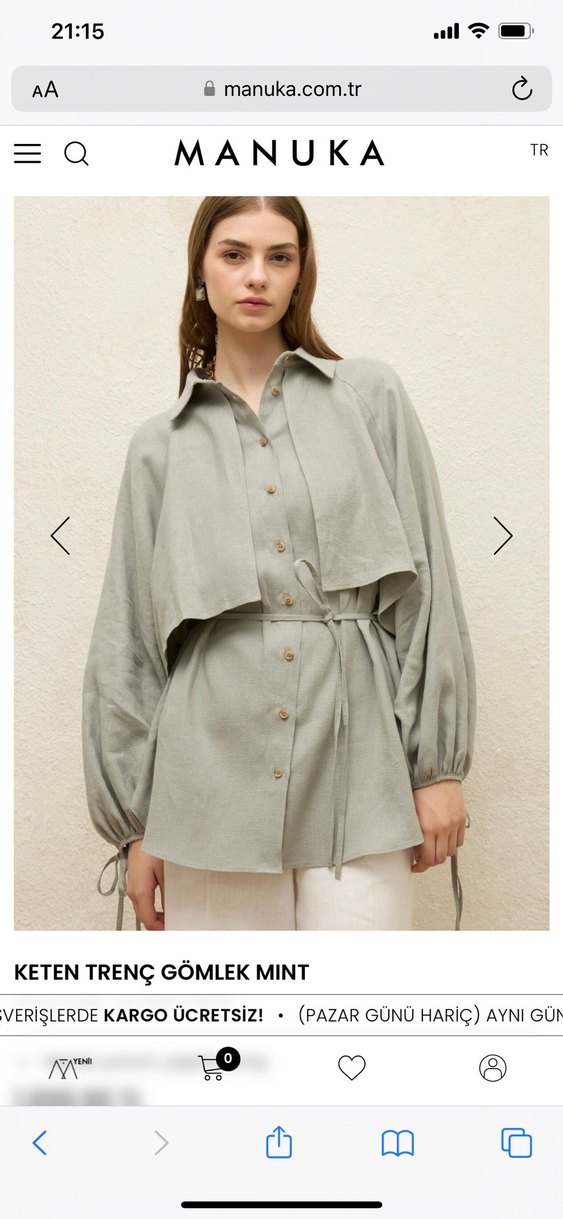 Mint renk keten kumaştan, düğmeli, uzun kollu, yakalı, kısa ve katmanlı tasarıma sahip salaş kadın gömlek. Rahat kullanım için idealdir. Manuka marka S-M beden. Güncel site fiyatı 1.900