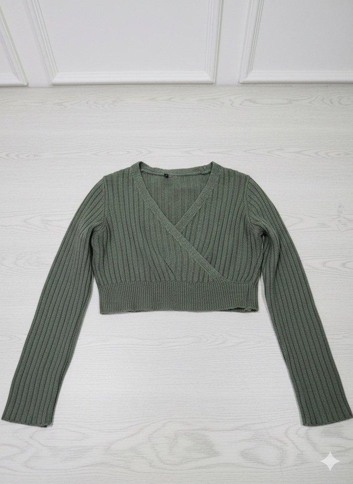 Mint yeşil renkte, uzun kollu ve V yakalı, örgü dokulu, rahat kesim kadın kazak. Günlük kullanıma uygun, konforlu ve şık bir parça. Kolları gözükenden bir tık daha ispanyol