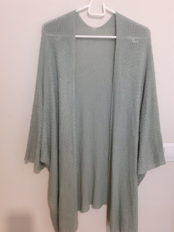 mintyeşili renkli, V yakalı, uzun kollu ve midi boyda, bol kesim örgü kadın hırkası. Rahat ve bohem tarzda bir görünüm sunar.