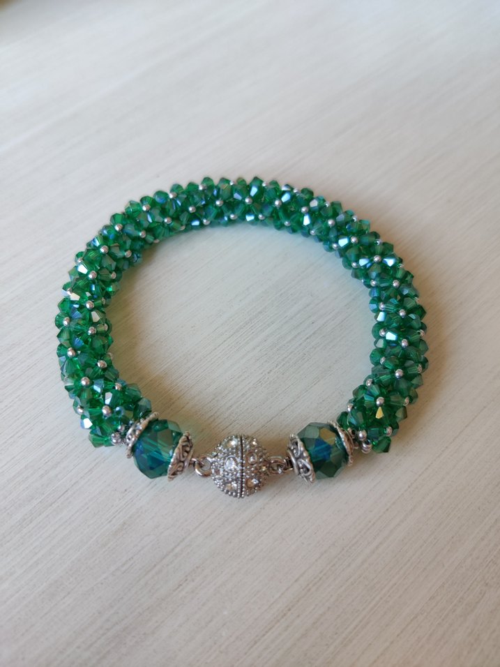 mint yeşili boncuklarla örülmüş,gösterişli bileklik. Düğünler için uygun.