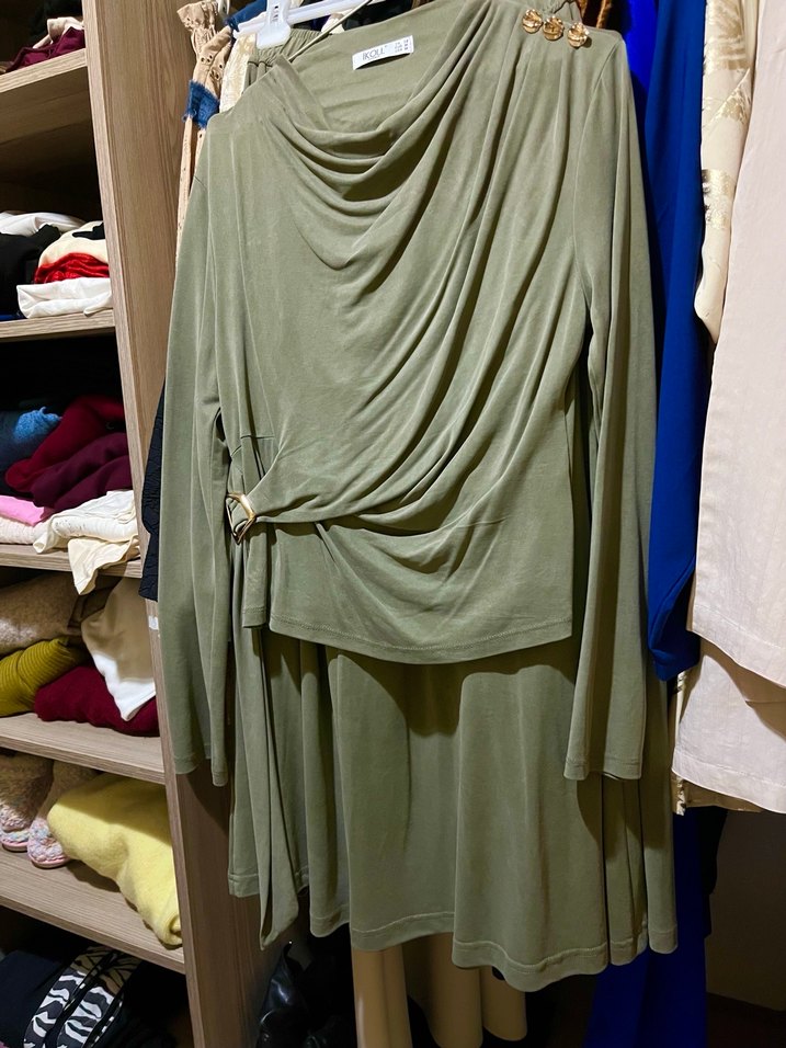 Yumuşak kumaş. Rahat şık kaliteli. Düğme ve bel detayındaki aksesuarı ile çok şık duruyor.