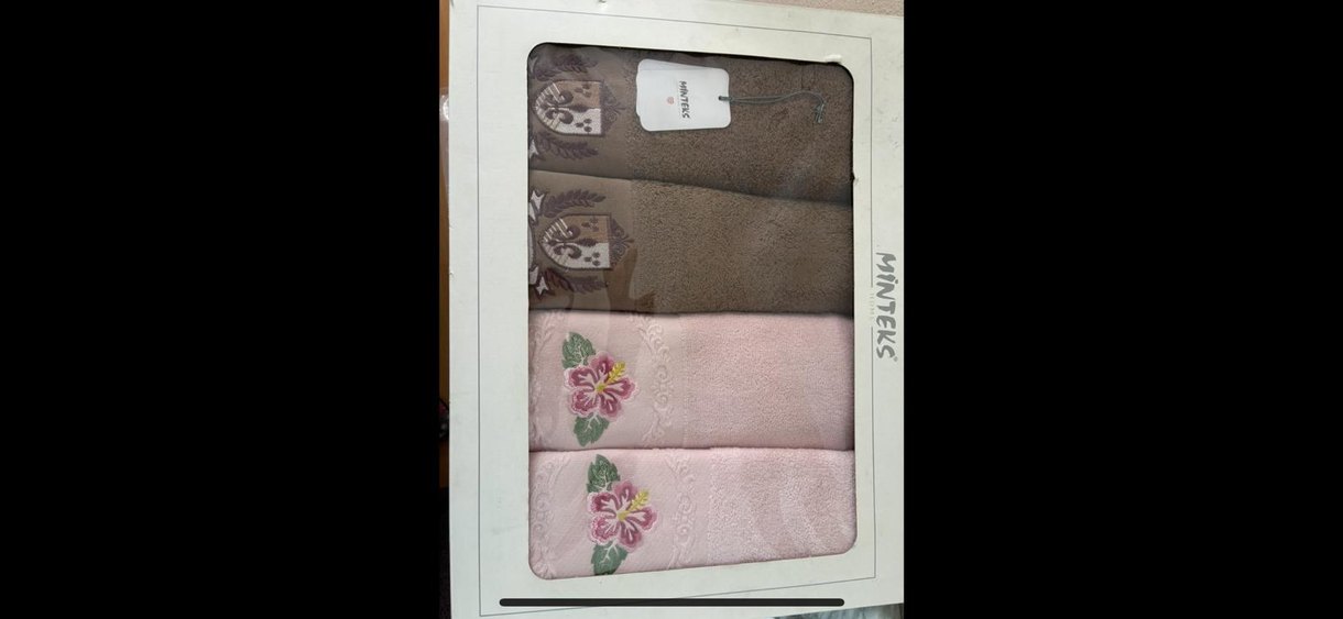 Nakışlı, pastel pembe ve kahverengi renklerde, çiçek ve süs desenli bohem tarzı havlu seti.