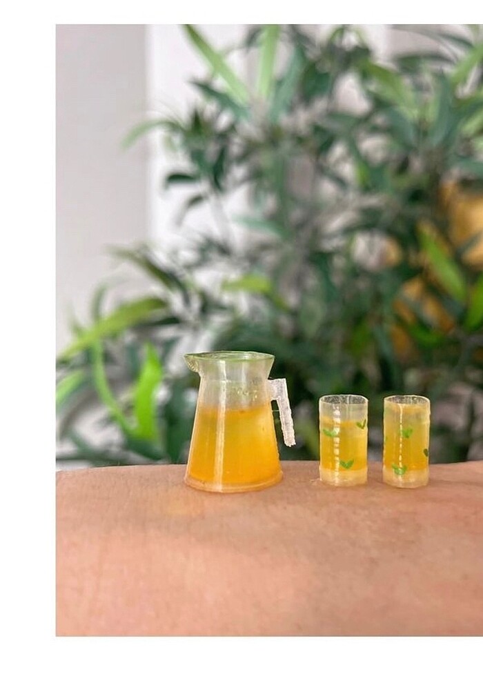 2 bardak bir sürahiden oluşmaktadır Ürün plastiktir İçleri boş (şeffaf) olarak gönderilmektedir İçine istediğiniz renkli sıvıyı koyabilirsiniz